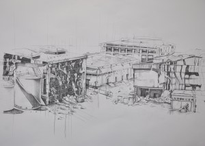 Disaster. Mari Power Plant (a Disaster waiting to happen), 2011 pencil on paper, 119 x 84 cm Share this: Click to share on X (Opens in new window) X Click to share on Facebook (Opens in new window) Facebook Like Loading...